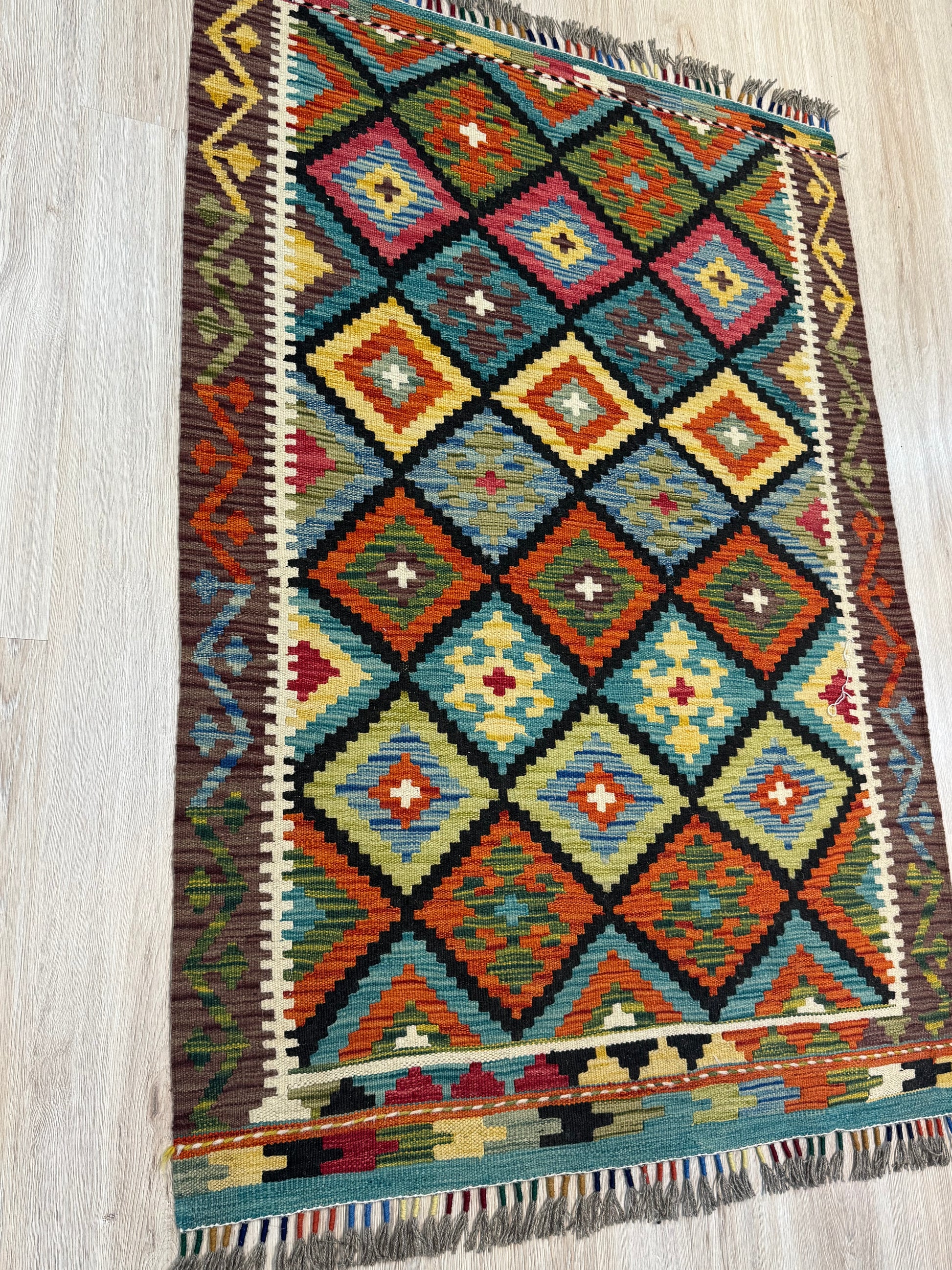 Woven with hand-dyed wool using time-honored flatweave techniques, the palette of earthy reds, midnight blue, and sun-washed beige captures the raw beauty of natural landscapes. A timeless expression of heritage and resilience, this kilim brings grounded elegance and cultural depth to any interior.