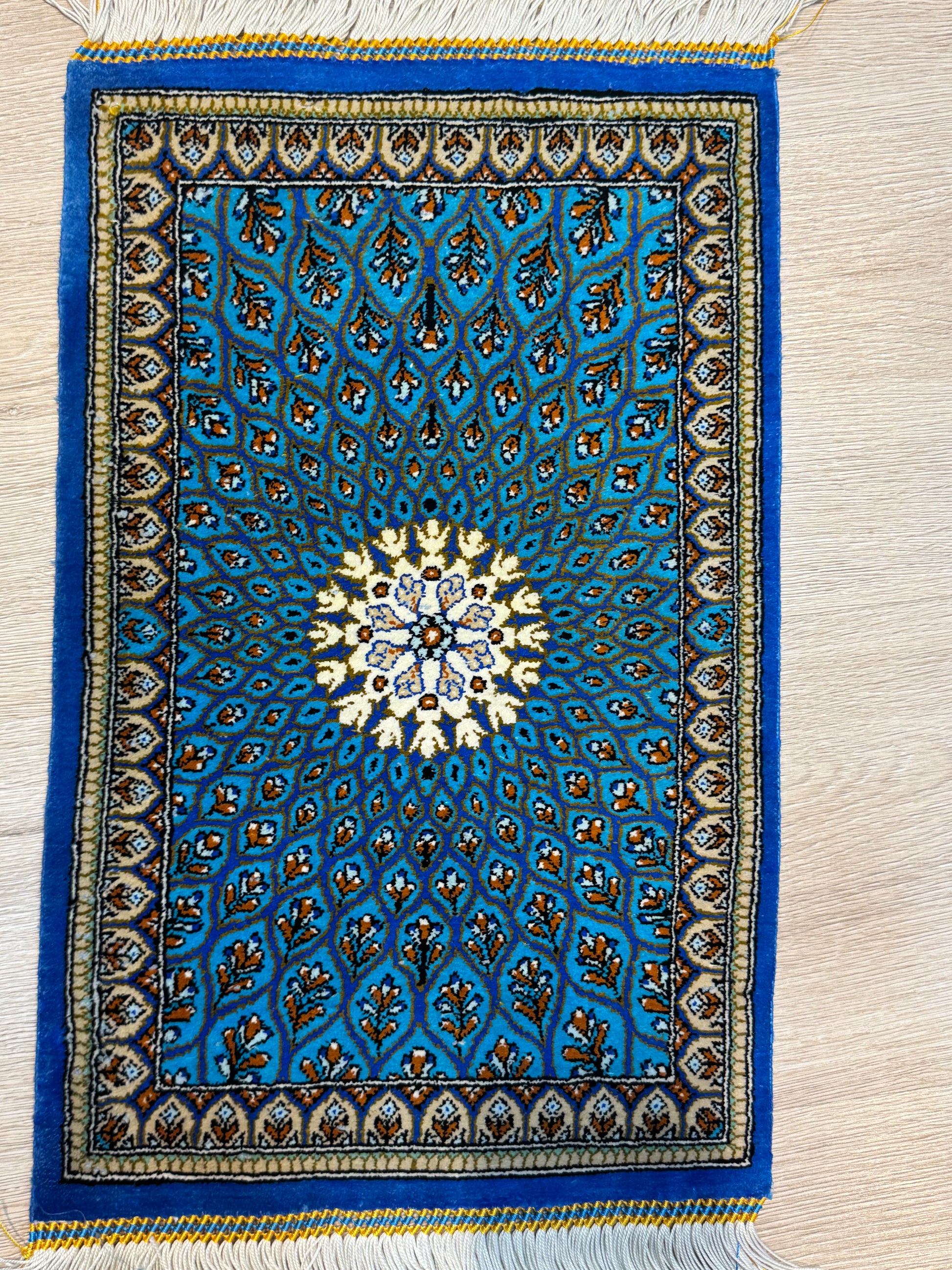 A tribute to timeless craftsmanship, this exquisite handcrafted silk rug embodies the celestial beauty of ancient architectural domes. Each delicate knot is woven with precision, forming a mesmerizing pattern that radiates harmony and elegance. The rich, luminous hues—achieved through natural plant-based dyes—enhance its depth, creating an interplay of light and texture that captivates the eye. A refined masterpiece of cultural heritage, this rug brings an air of sophistication and artistry to any interior.
