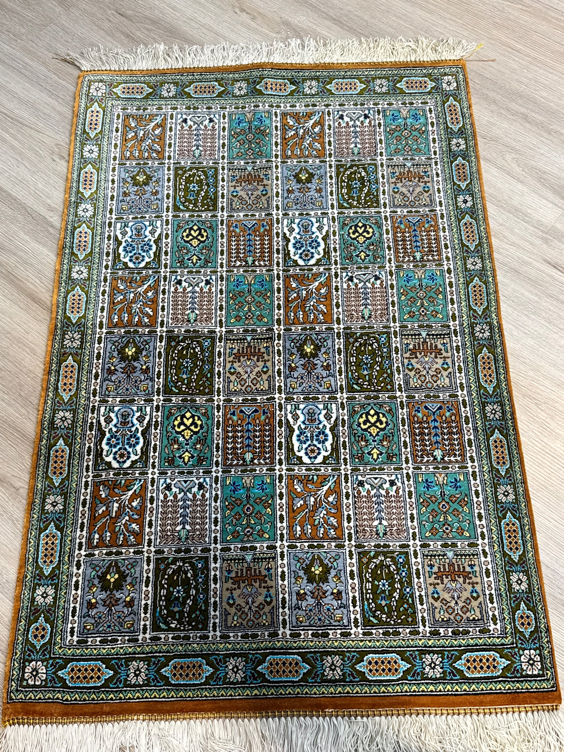Inspired by nature’s unending cycle, this silk rug captures the essence of the four seasons in a seamless, harmonious design. From a luminous center, floral motifs and curling vines flow outward, echoing spring’s bloom, summer’s richness, autumn’s warmth, and winter’s stillness.