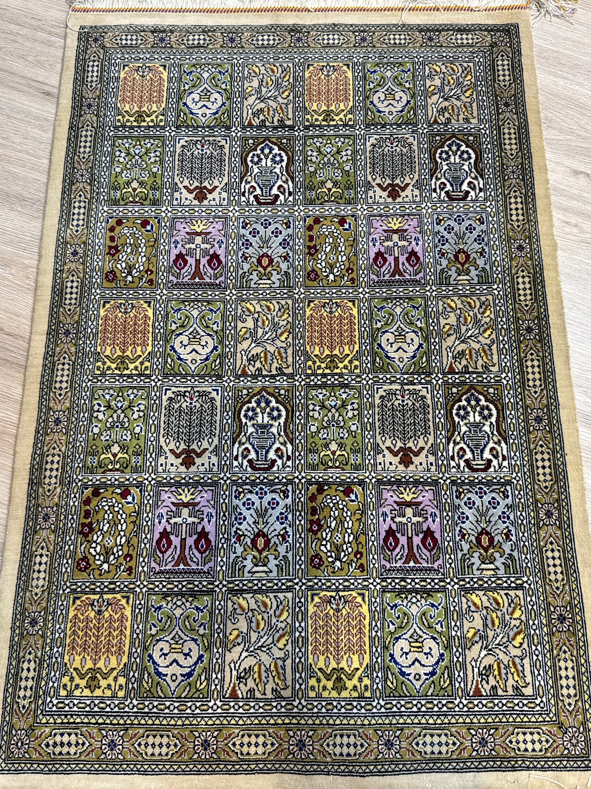 Drawing from the graceful continuity of nature, this silk rug reflects the poetic essence of the four seasons in a seamless, harmonious flow. Each quadrant reveals delicate transitions—spring’s tender blooms, summer’s lush foliage, autumn’s golden leaves, and winter’s tranquil stillness.