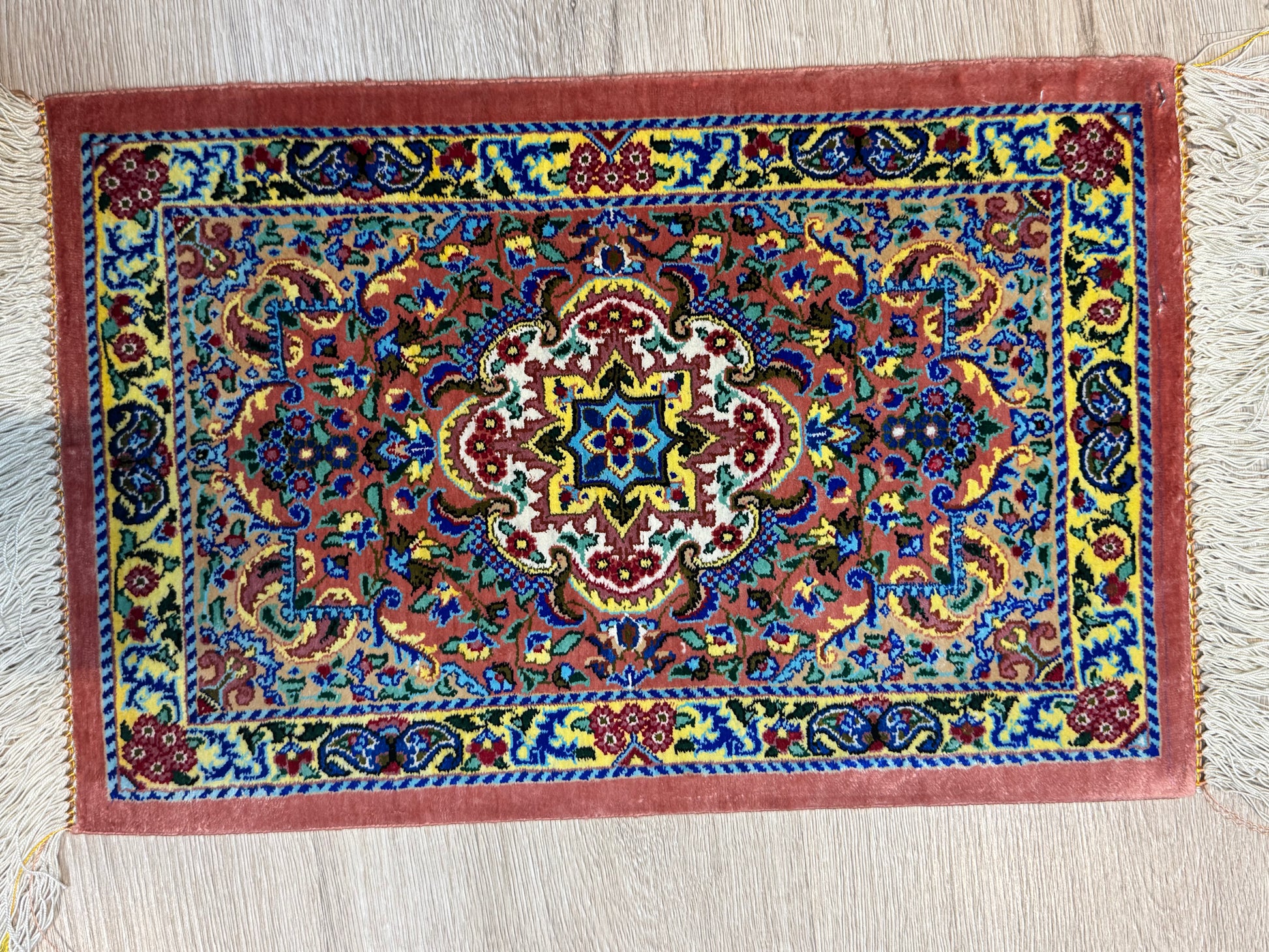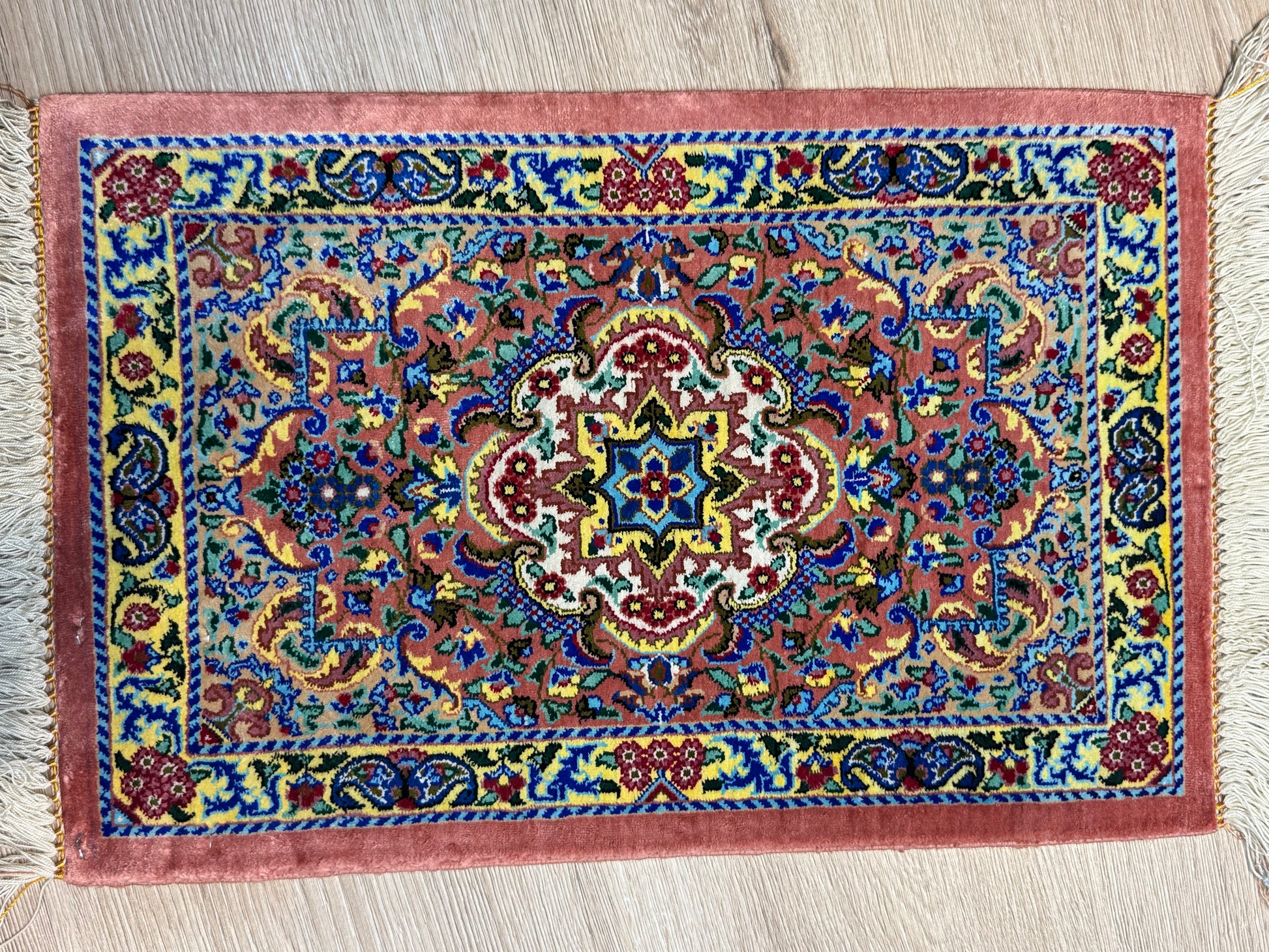 Woven with fine silk threads and enriched by plant-based dyes, gentle tones of emerald, rose, and gold shimmer with understated beauty. A refined celebration of heritage and harmony, this piece brings the serene charm of a blooming garden into any interior.