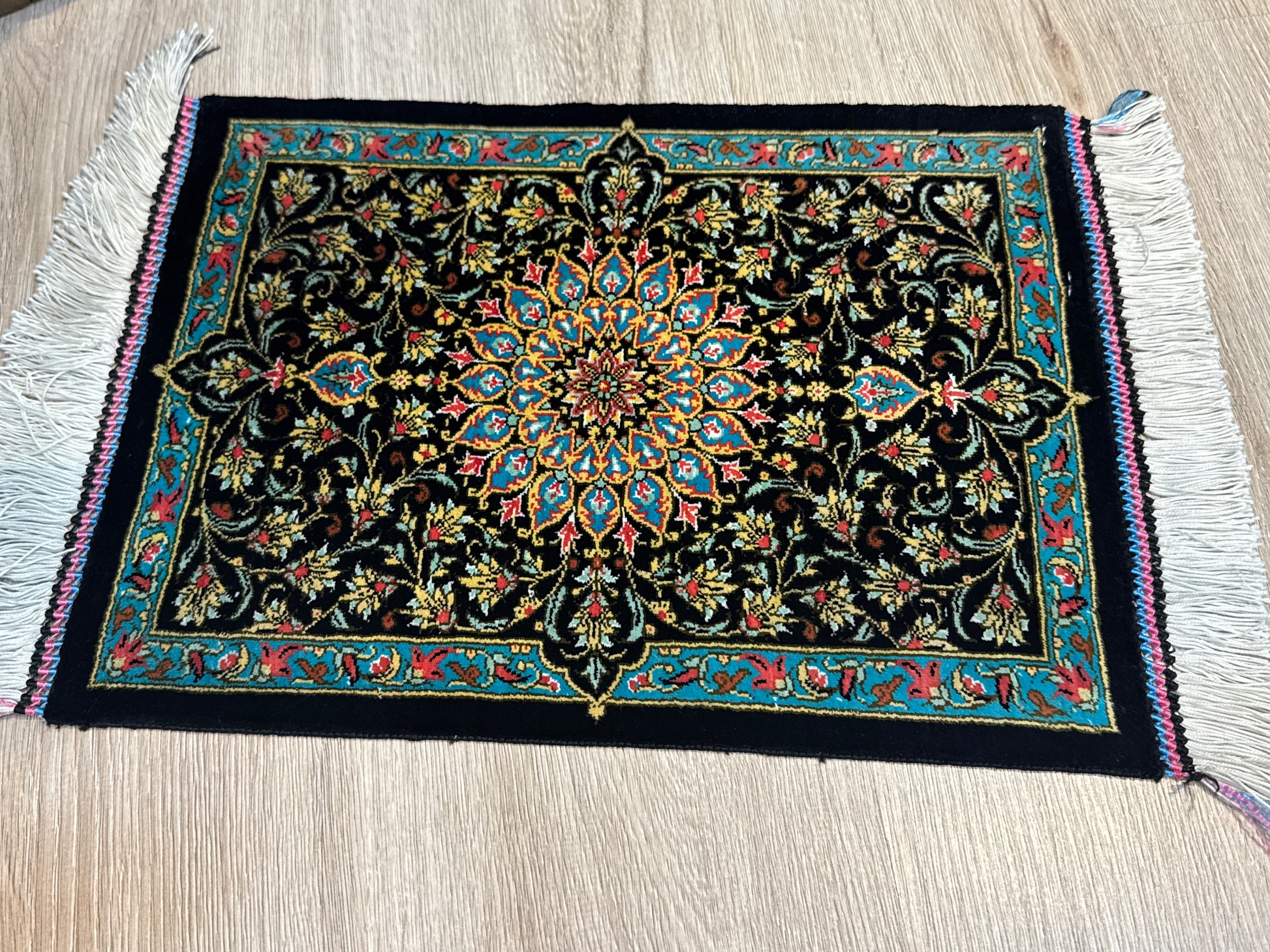 Inspired by the grandeur of Persian imperial design, this silk rug reveals an intricate harmony of arabesques, palmettes, and flowing vines. A radiant medallion anchors the composition, unfolding with stately precision from a luminous central axis.