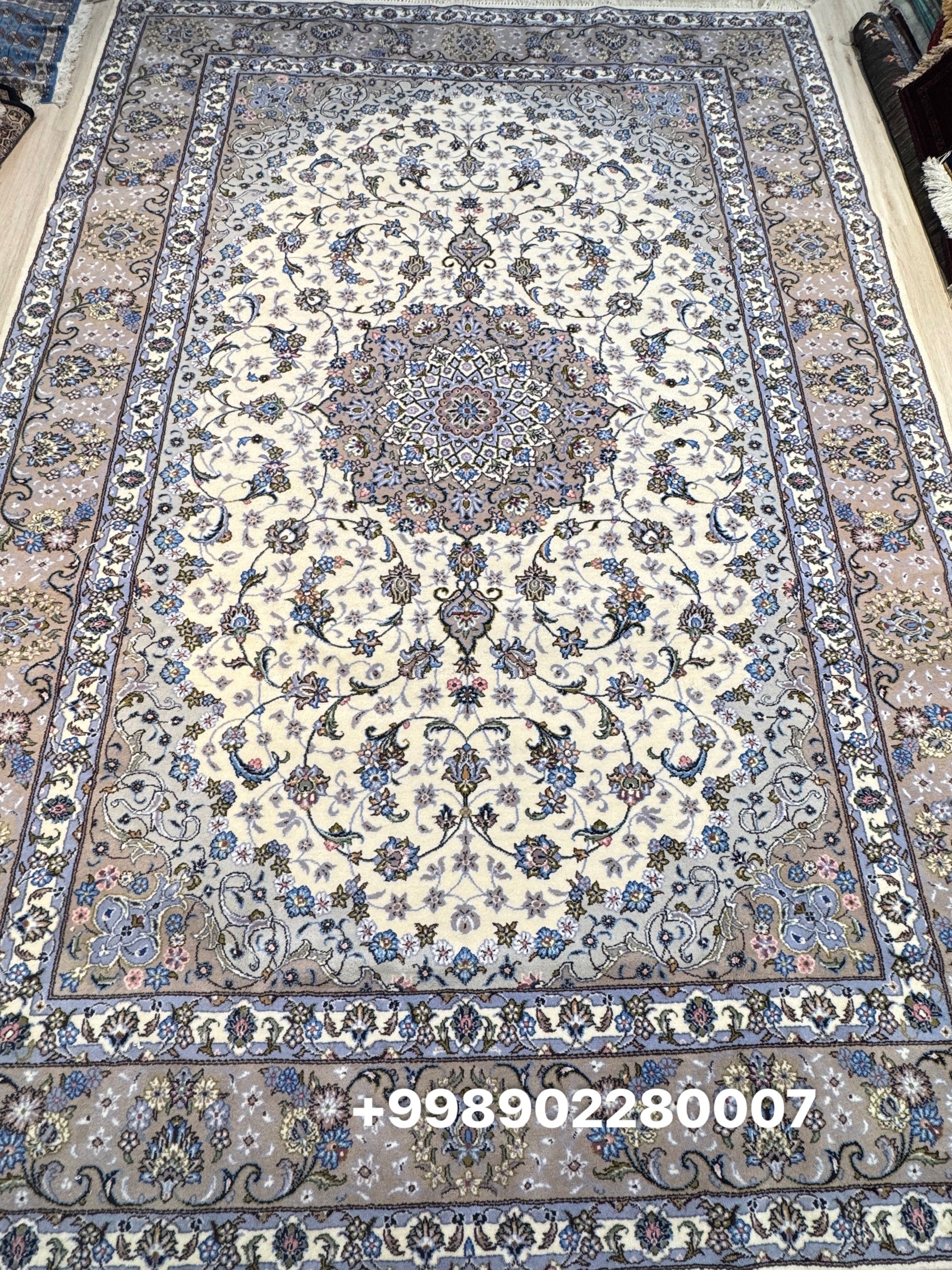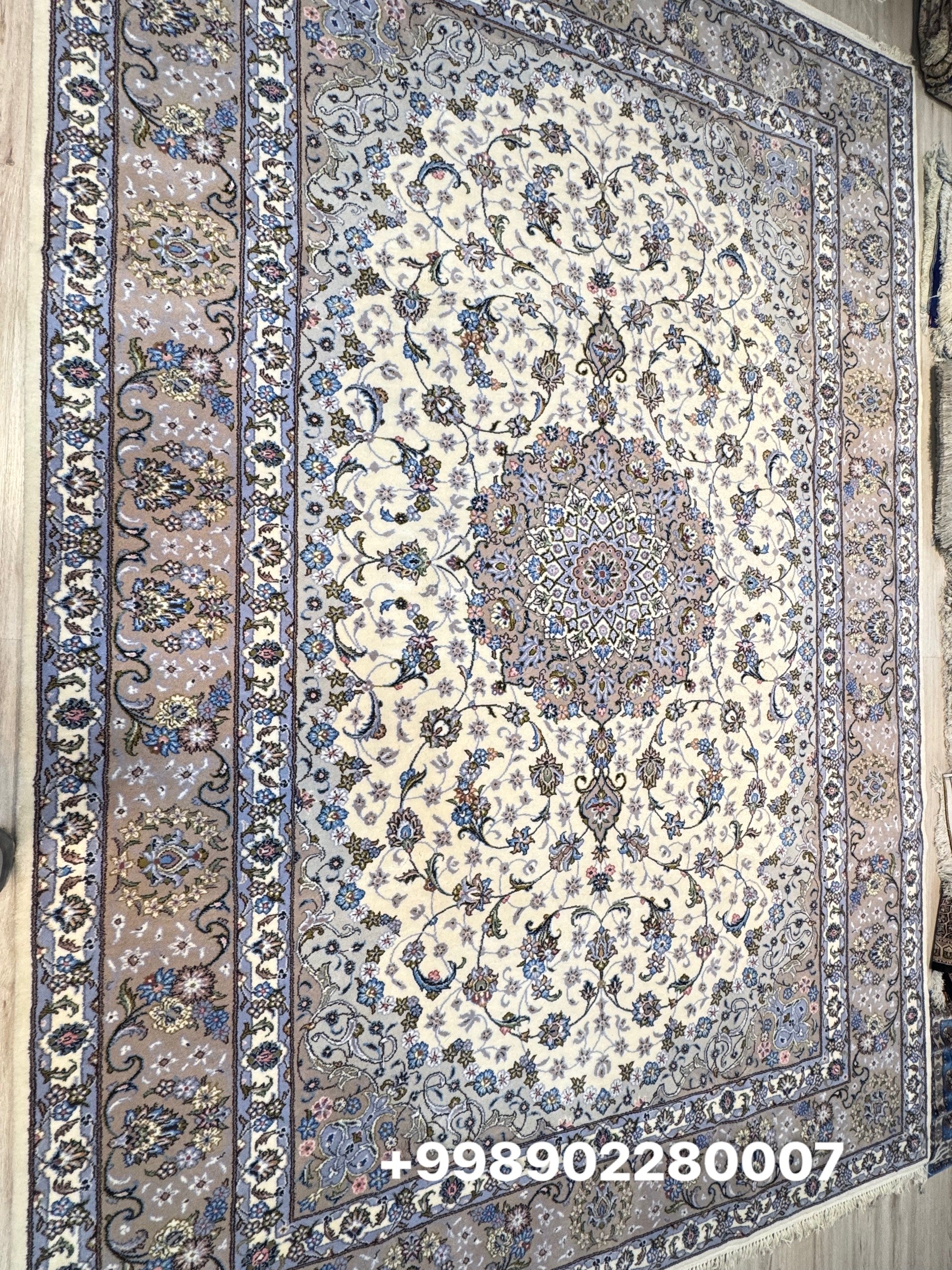 Drawing inspiration from the poetic gardens of ancient Persia, this silk rug blossoms with delicate florals arranged in graceful symmetry. From a luminous central medallion, tendrils and petals unfold in rhythmic harmony, echoing the timeless elegance of palace courtyards. Handwoven with fine silk threads and tinted with natural plant-based dyes, its soft hues of blush, jade, and ivory create a serene, luminous glow. A refined tribute to nature’s beauty and artistic legacy, this piece brings a dreamlike charm to any space.