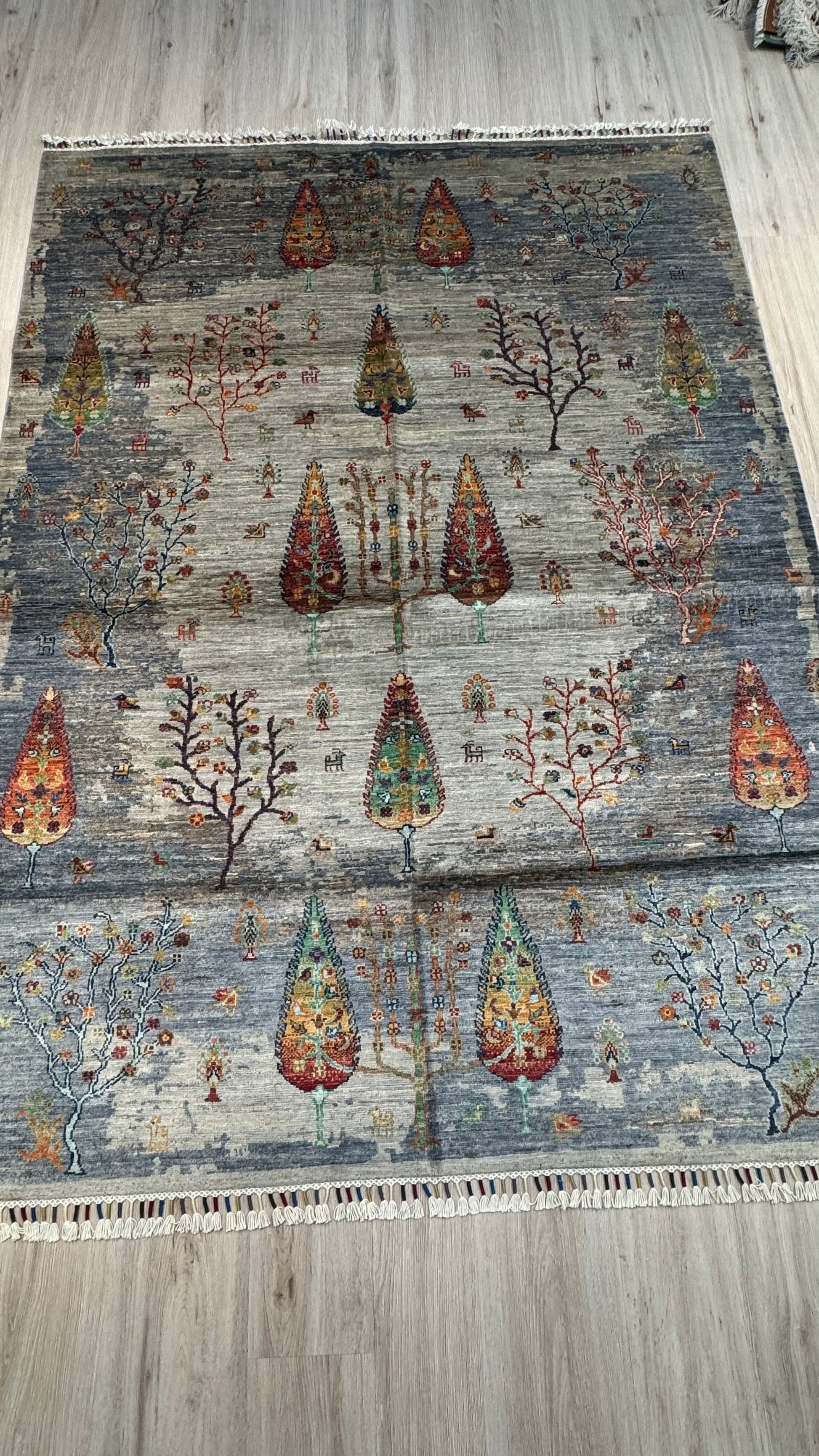 Drawing inspiration from the enchanted realms of Eastern tales, this silk rug evokes the mystery and romance of a starlit garden whispered through a thousand nights. Its floral lattice and winding arabesques bloom from a radiant center, weaving together dreams, stories, and the elegance of timeless design. Handwoven with the finest silk threads and dyed with natural plant-based pigments, tones of midnight blue, rose gold, and soft ivory shimmer like moonlight on petals. A poetic fusion of fantasy and tradition, this piece brings depth, allure, and refinement to any space.
