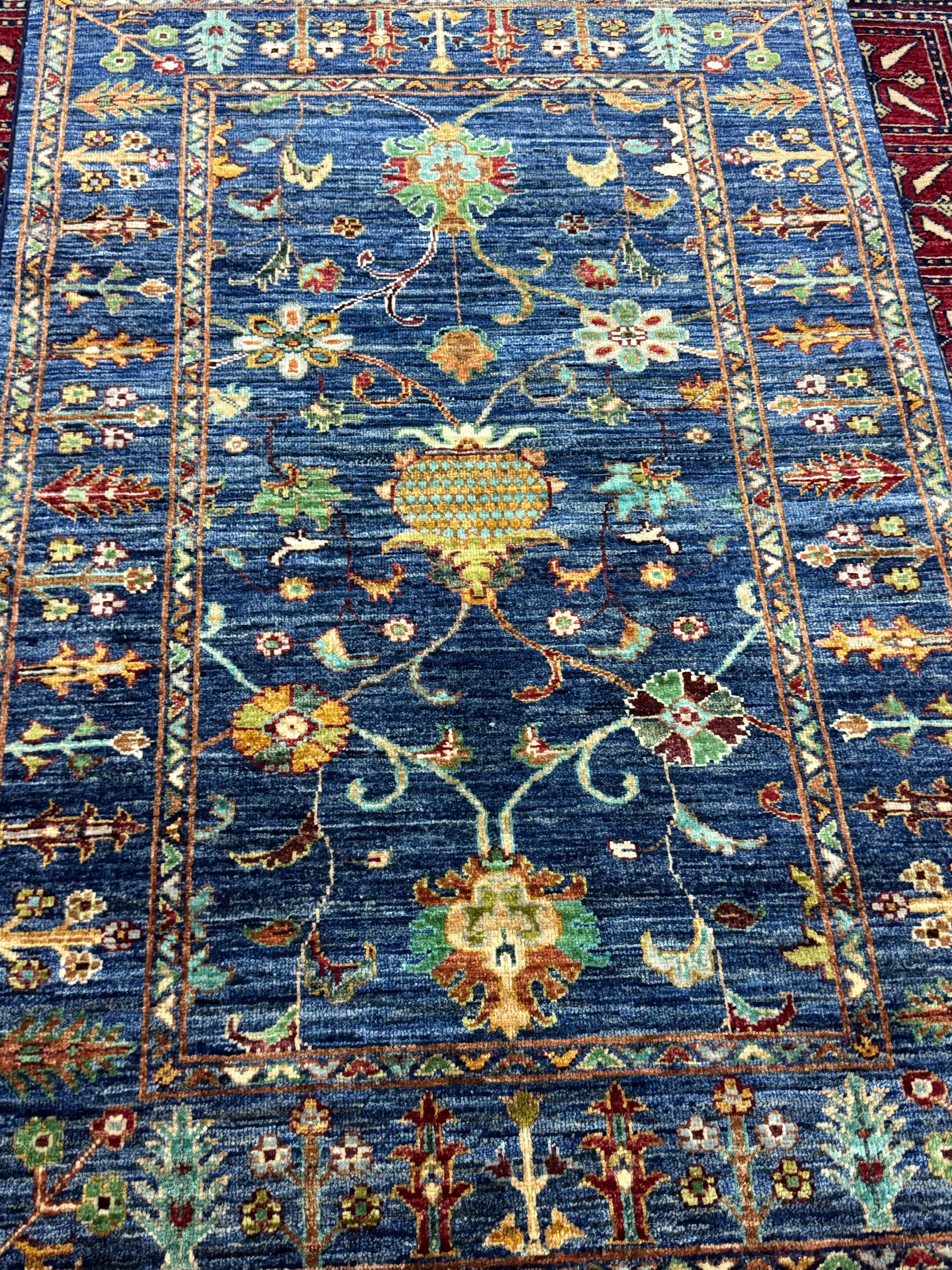Inspired by the elegance of a flourishing garden at its peak, this handwoven wool rug reveals a tapestry of blossoms, curling stems, and graceful foliage. From its radiant floral center, patterns flow outward in harmonious symmetry, mirroring the balance of nature in full bloom. Enriched with natural plant-based dyes, tones of rose, emerald, ivory, and antique gold create a warm, luminous presence. A celebration of beauty and craftsmanship, this piece brings the freshness and refinement of a timeless garden into any interior.